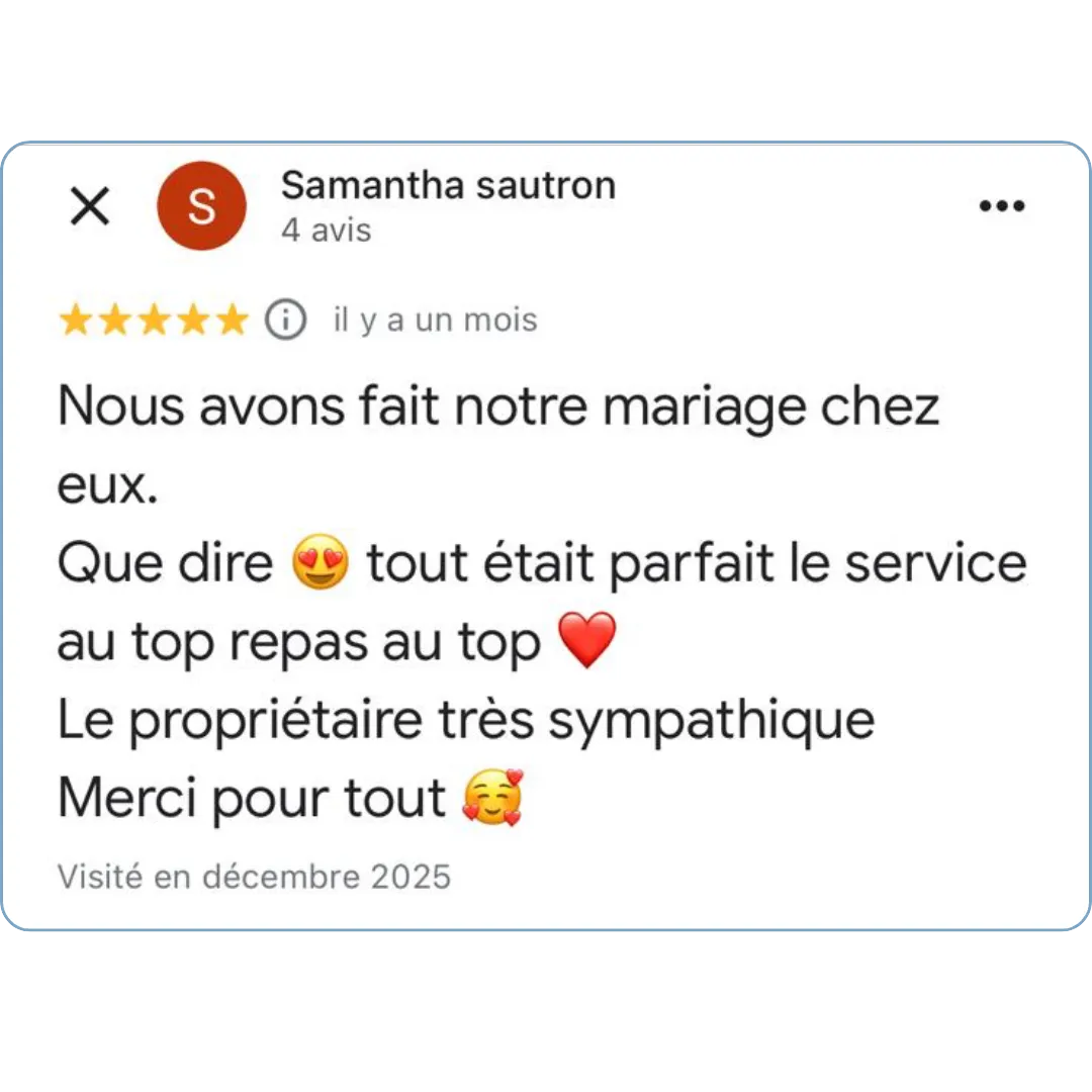 Un lieu chaleureux, une organisation maîtrisée et un accompagnement de A à Z pour profiter pleinement.